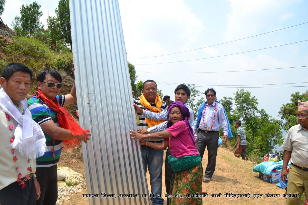 Relief materials distribution to the fire victims, Syangja