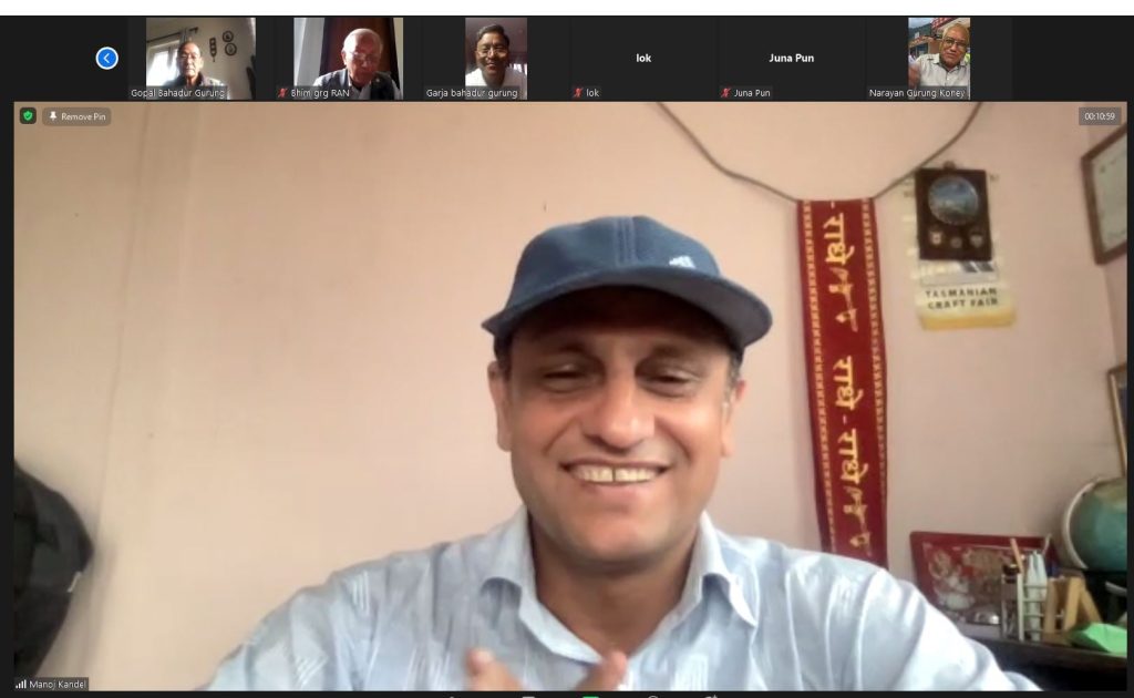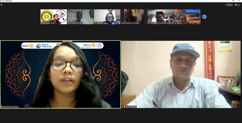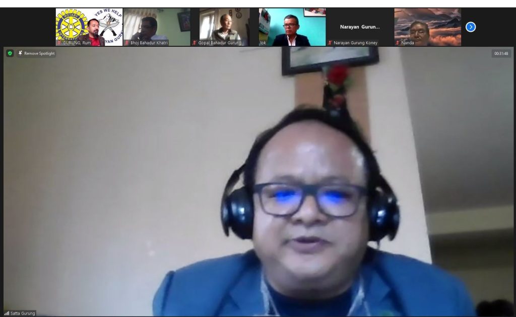 Past President and Sgt-At-Arms Rtn. Mr. Narayan Gurung briefed about the general rules of the event to all the participants. Likewise, President Elect. Rtn. Mr Lok Bahadur Gurung addressed the virtual event by welcoming all the distinguished participants and guests. Then after, President Rtn. Mr. Satta Bahadur Gurung started the RWM meeting no. 769 and started the discussion on the regular club businesses. After this, Charter President Rtn. Maj. Gopal Gurung addressed the event. He shared about the history of the RC Himalayan Gurkhas. He further briefed about how the Club was formed and tireless efforts from the Charter Members. Rtn. Maj. Gurung thanked to the Past District Governor Mr. Tirtha Man Baidya and Mr. Dilendra Shrestha for the support during the beginning of the Club. He informed that Rotary Club of Kathmandu North East sponsored the RC The Himayalan Gurkhas and GSR was Mr. Mingma Sherpa.
