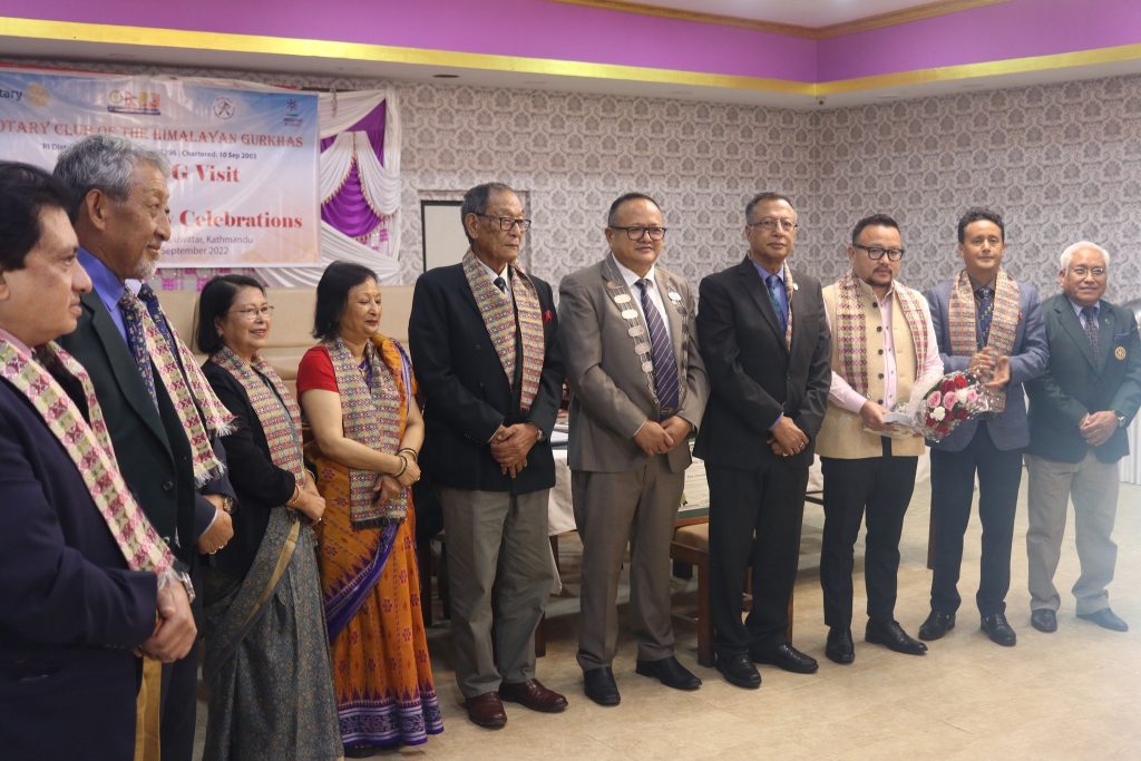 19th Charter Day of the Rotary Club of The Himalayan Gurkhas was celebrated on Saturday, 10th September 2022 at Parelee Banquet, Baluwatar, Kathmandu. At this function, Chief Guest was District Governor (DG) of the Rotary International District 3292 Rtn. Mr. Jitendra B. Rajbhandary. Likewise, First Lady Sarita Rajbhandary, DGE Rtn. Rajendra Prasad Dhoju, DGN Rtn. Rajendra Man Sherchan, PDG Rtn. Sanjay Giri, AG Rtn. Lalita Thapa, District Secretary Rtn. Amit Giri, District Grant Cub committee Chair Rtn. Siba Bhakta Rajbhandary, Past AG Rtn. Milan Bikram Shah, Past GML Committee Chair Rtn. Rajendra Shakya, President of Rotaract Club of Peoples Campus Rtr. Sunil Shrestha and Interactors from Interact Club of Valley Public School were attended the function.