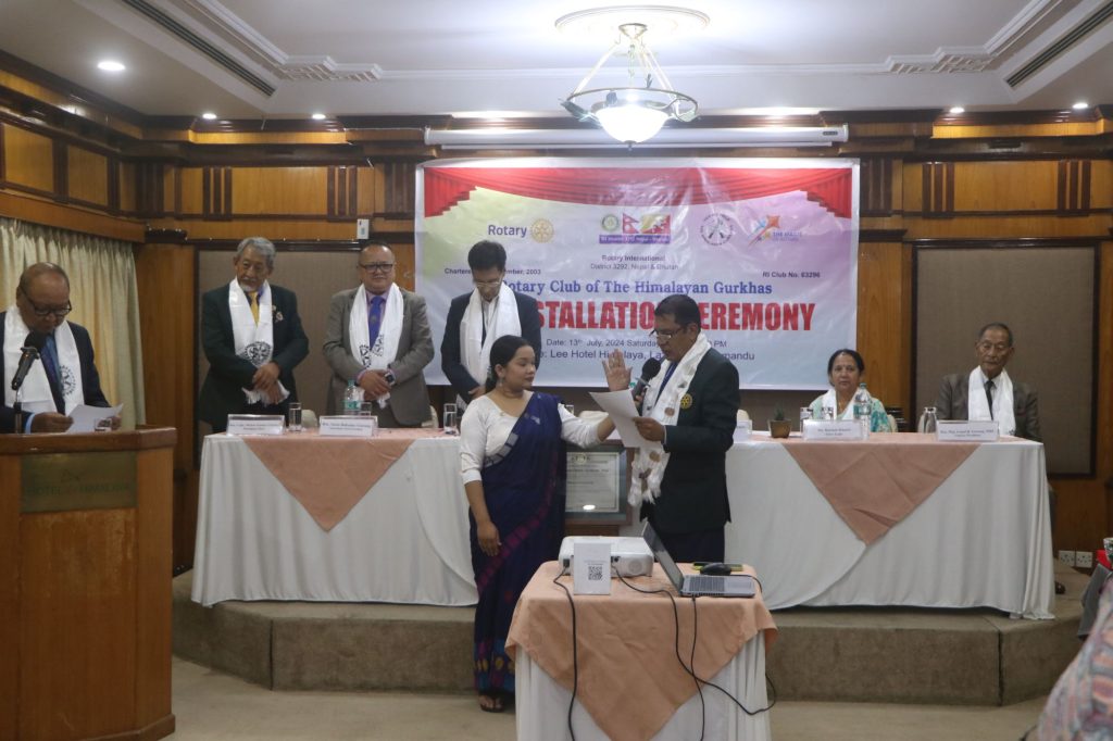 21st Installation Ceremony for the Rota Year 2024/25 of the Rotary Club of The Himalayan Gurkhas held on Saturday 13th July 2024 at Hotel Le Himalaya, Lazimpat, Kathmandu. In the installation Ceremony, Assistant Governor (AG) Rtn. Arun Man Sherchan was the Chief Guest from the Rotary International District 3292 Nepal-Bhutan; and Immediate Past Assistant Governor Rtn. Debendra Shrestha was the Guest of Honour. Past President of the Club Rtn. Siri Prasad Gurung delivered welcome remarks and warmly welcomed all the participants including Chief Guest, Guest of honor and other Rotarians, Rotaractors and Interactors; He further introduced incoming President Rtn. Bhoj Bahadur Khatri to the Chief Guest and other participants.