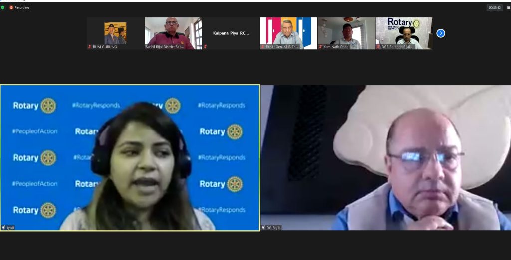 Rtn. Rum B Gurung, Chair – Public Image; participated in the District Public Image Seminar virtually for the RY 2020/21. District Governor Rtn. Rajib Pokharel was the Chief Guest in the virtual seminar.