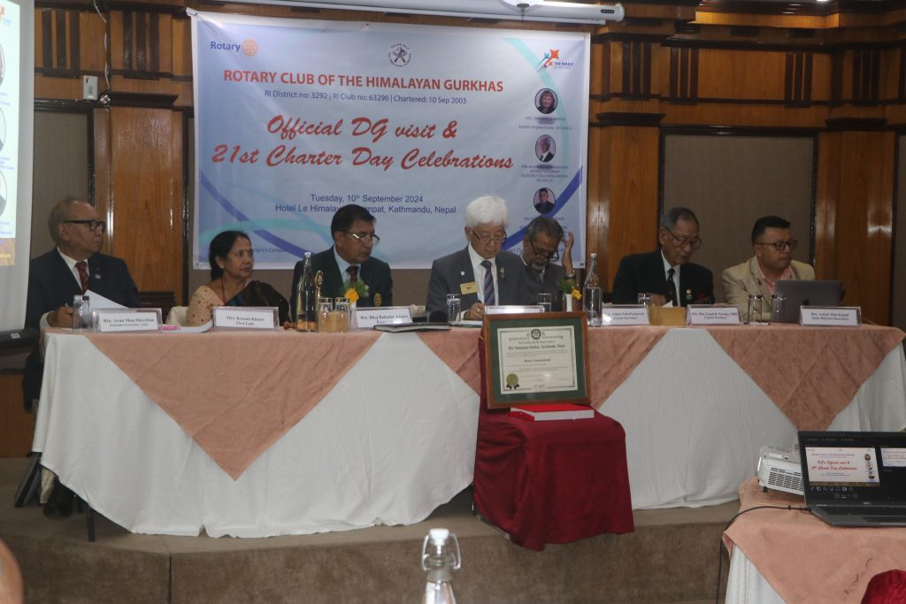 District Governor’s Official visit and 21st Charter Day Celebrations of Rotary Club of The Himalayan Gurkhas is successfully concluded on Tuesday, 10th September 2024 at Hotel Le Himalaya, Lazimpat, Kathmandu. District Governor Rtn. Rajendra Man Sherchan was the chief guest for the event.