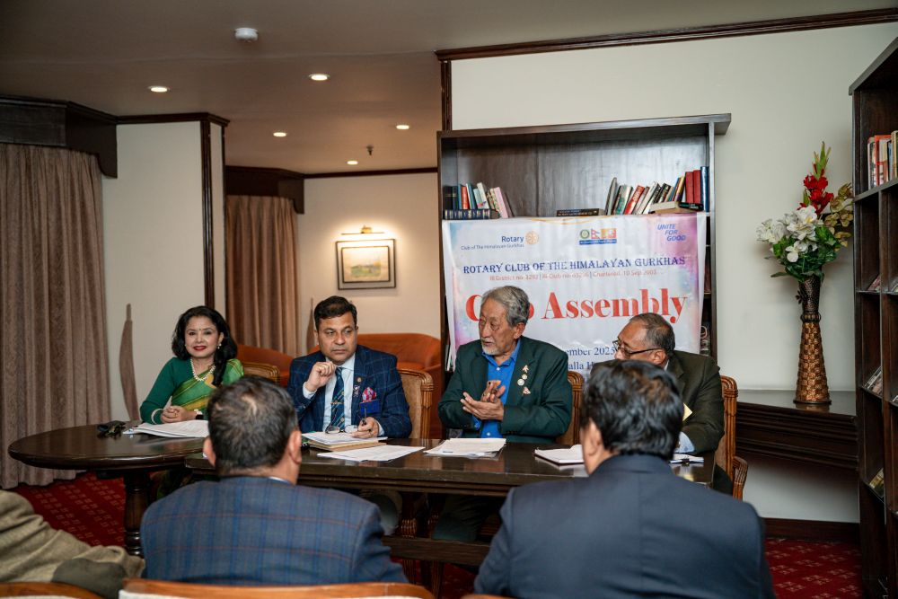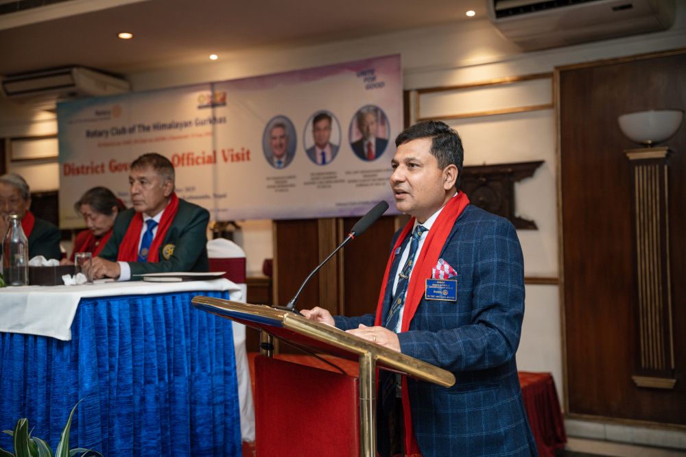 To formally introduce the District Governor to all participants, an introduction video of DG Rtn. Binod Koirala was screened. Following this, the District Governor addressed the gathering. In his speech, he highly appreciated the Rotary Club of The Himalayan Gurkhas for successfully completing various impactful service projects in the past. He encouraged the Club to further strengthen its membership by inducting more female members and urged closer collaboration with the District in implementing service projects. Additionally, he emphasized the effective use of social media and other communication platforms to disseminate club activities, highlighted the importance of Rotary branding, and requested members to complete Rotary learning courses to enhance their Rotary knowledge and leadership skills.