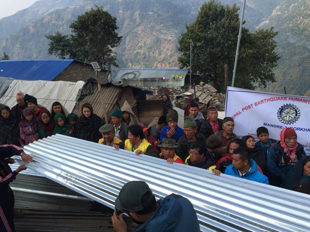 Post earthquake humanitarian relief work was carried out at Barpak, Gorkha district. Total amount of 1.6 million NPR was received from Rotary International District 1040 Yorkshire – UK. From that amount; metal roof sheet and metal rods were distributed to 128 households. Apart from this, solar lights were also distributed to the earthquake victims.