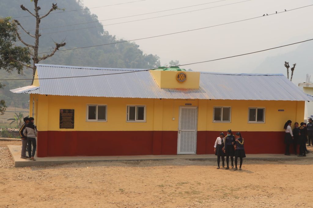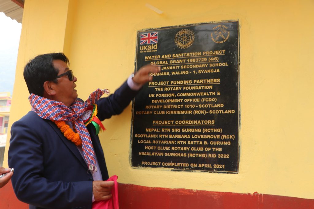Project handover program is successfully concluded at Shree Ranabir Janahit Secondary School, Waling Municipality, Ward # 1, Khahare, Syangja district on 4th April 2021.  The project is “Modern Toilet Construction” funded by The Rotary Foundation, UK foreign commonwealth & development office (FCDO), Rotary International District 1010 – Scotland & Rotary Club of Kirriemur – Scotland. Newly constructed toiled building was handed over the School Management Committee in the presence of Chairman – SMC and Ward Chairperson. At the handover program; club members of the RC The Himalayan Gurkhas, President of RC Waling, teachers, students and locals were present.