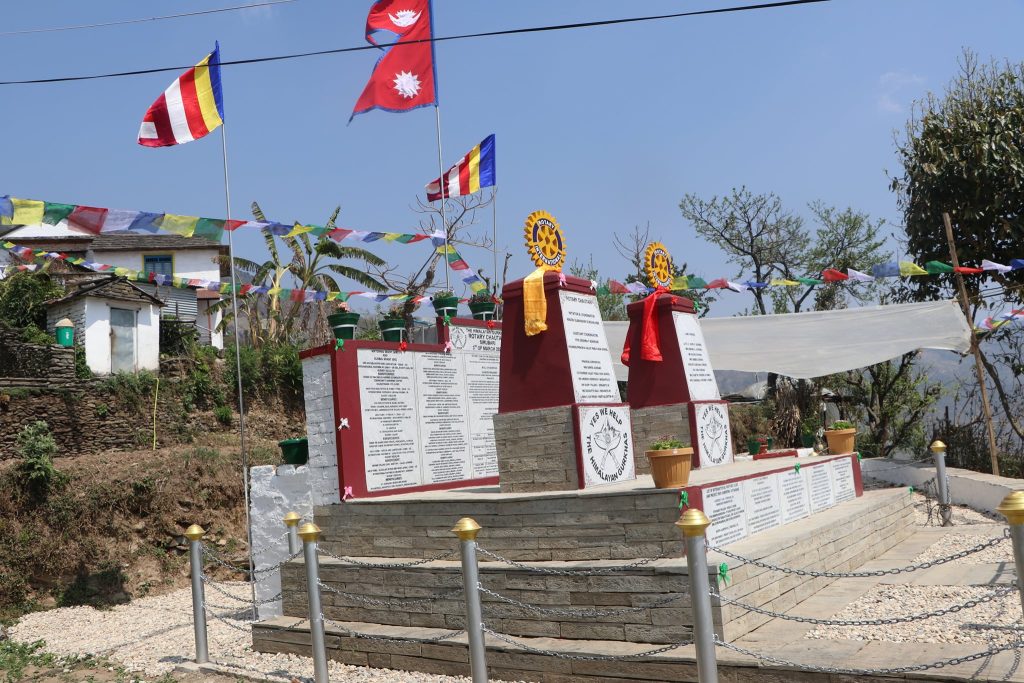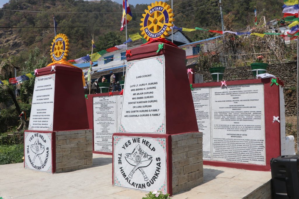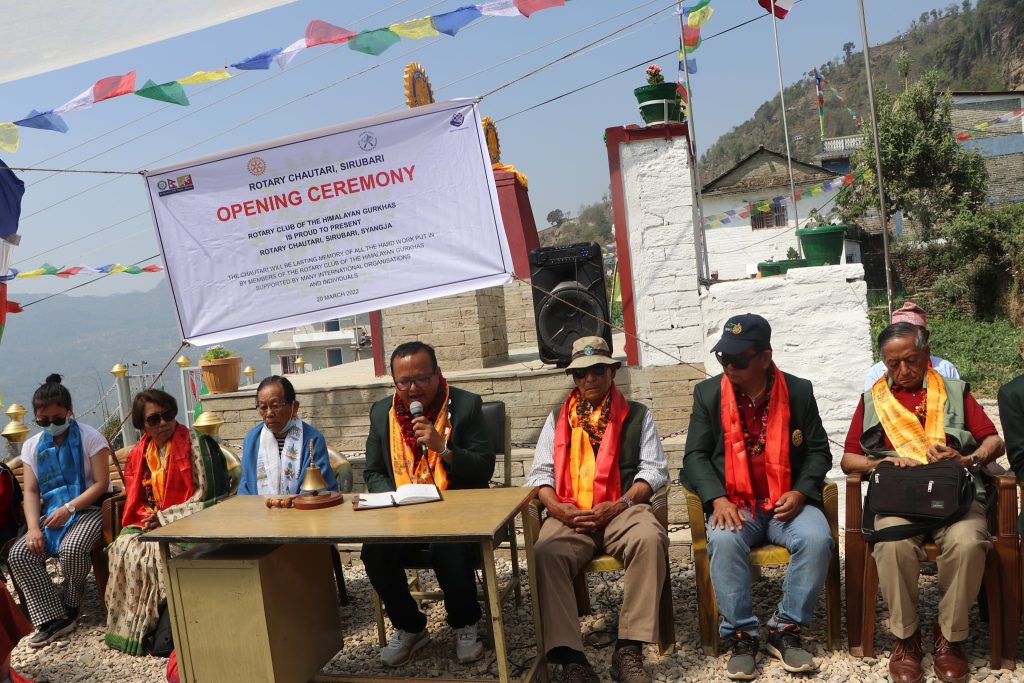 A special monument “Rotary Chautari” was officially opened at Sirubari, Syangja on 20th March 2022. A special Opening ceremony was organized by Rotary Club of The Himalayan Gurkhas at Sirubari, Syangja on 20th March 2022. The “Rotary Chauraty” was jointly inaugurated by the Charter President Rtn. Major Gopal Bahadur Gurung, MBE (RC The Himalayan Guakhas), President Rtn. Satta Bahadur Gurung (RC The Himalayan Gurkhas) and land donor Mrs. Bishnu Kumari Gurung.