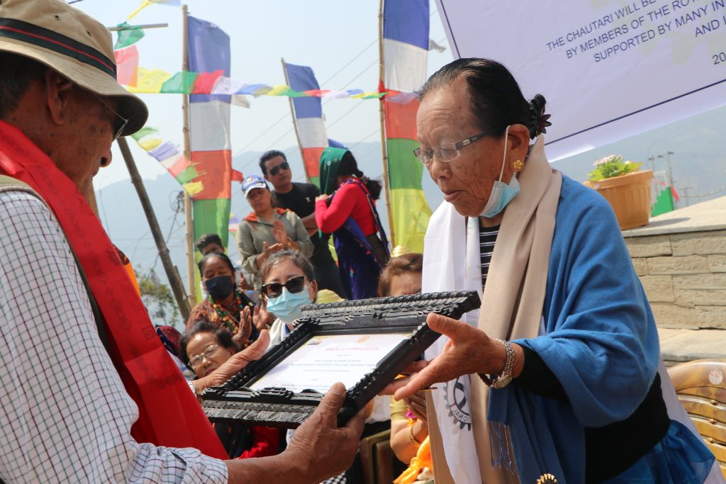 The most important and kind-hearted person in the “Rotary Chautari project” is Mrs. Bishnu Kumari Gurung, who donated the land where the Rotary Chautari is established. She was felicitated by the Rotary Club of the Himalayan Gurkhas. Charter President Rtn. Major Gopal Bahadur Gurung, MBE; handed over the Token appreciation to her.