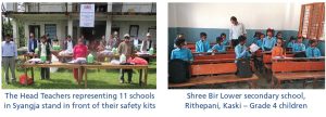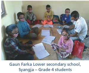 The covid-19 safety materials were distributed to total 3,977 number of students and 238 teachers in 14 schools of Syangja, Kaski and Lamjung. Total 29,290 pieces of facemasks and 117 jar (5 Ltr in a jar) of Sanitizers were distributed.