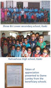 In each distribution point the local Ward chairman, the chairman of school management committee or Head teacher thanked Dame Lumley for her continued support to thousands of school children in the remote hills of Nepal.